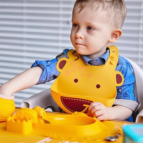 O Babador em Silicone Girafa Lola da Marcus & Marcus com um design adorável de girafa, ele traz um toque lúdico à mesa, encantando os pequenos enquanto protege a roupa contra derramamentos e migalhas.