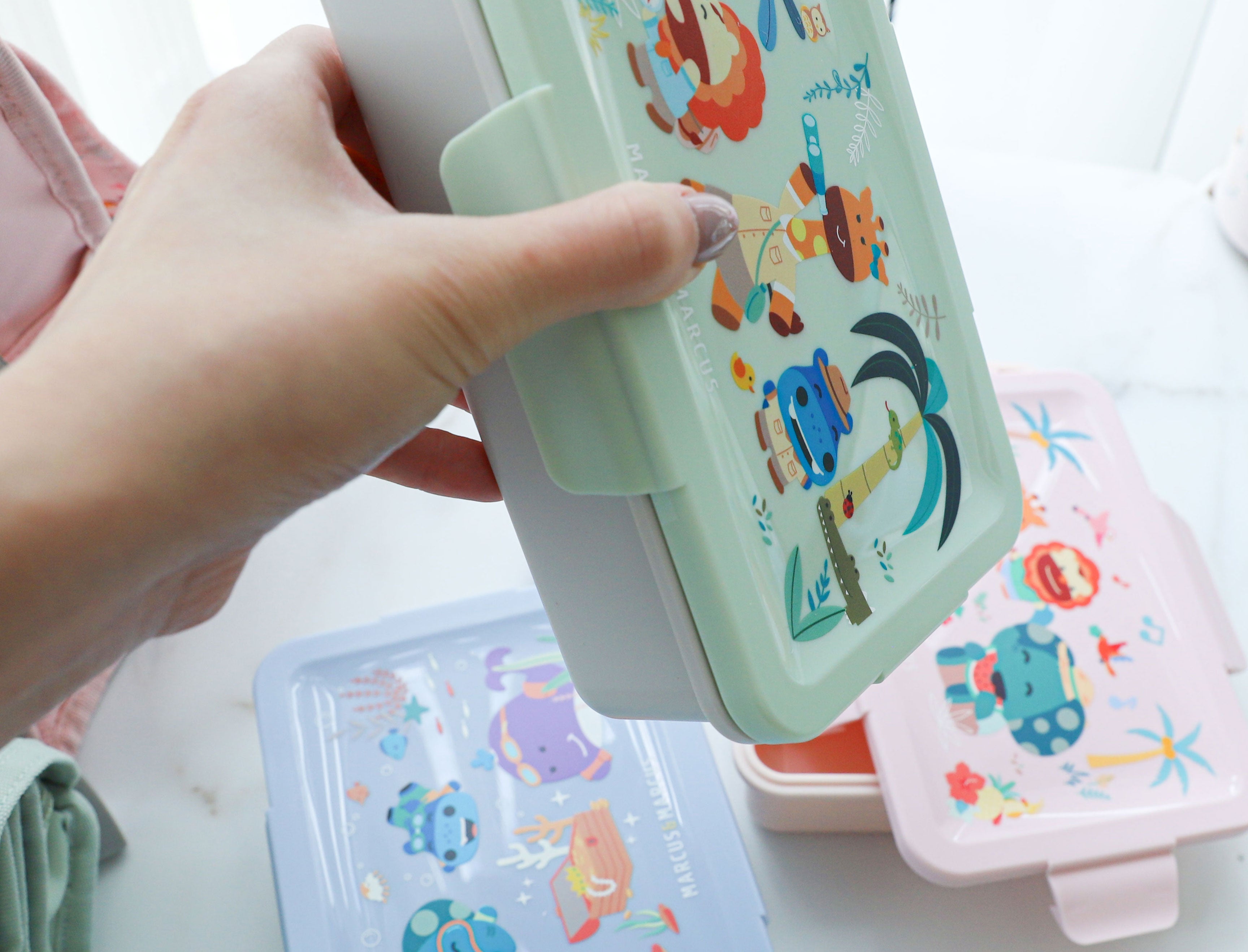 Com um design encantador, a tampa é estampada com personagens divertidos que vão animar as refeições, e o box inclui etiquetas personalizáveis.
