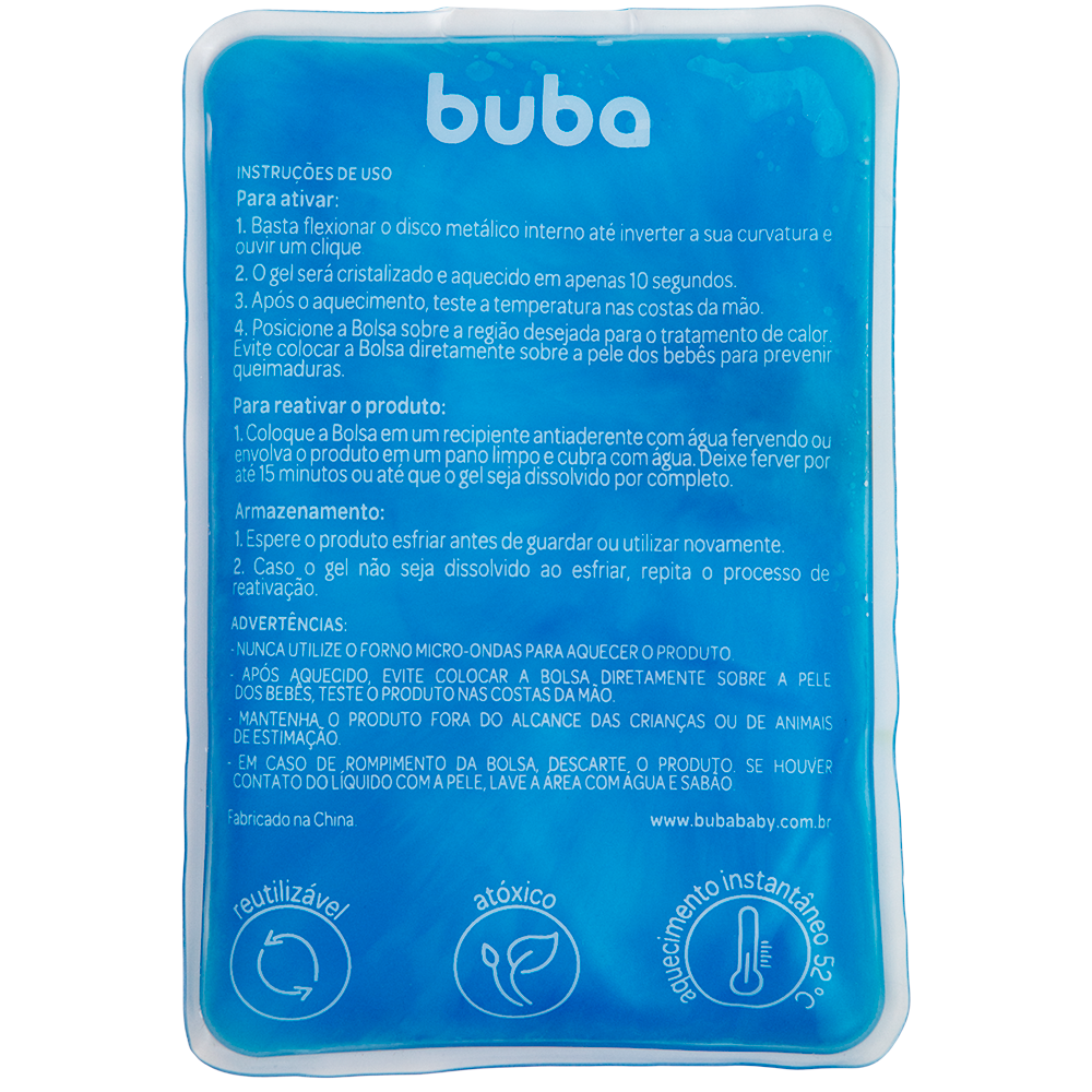 A Bolsa Térmica em Gel Instantânea da Buba é indicada para aliviar as cólicas em bebês e em adultos, além de auxiliar no tratamento de dores e inflamações por meio da terapia de calor.