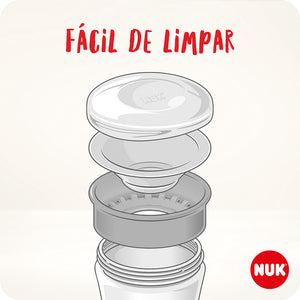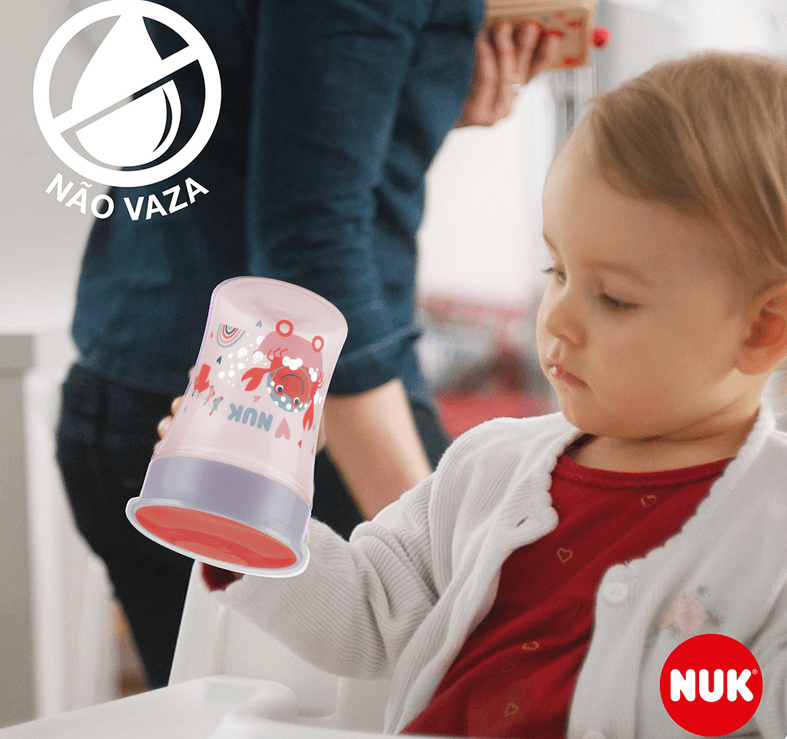 Seu sistema 360° garante a ingestão de líquido sem esforço, aliado a uma eficaz estrutura antivazamento por toda a sua borda. O copo é intercambiável e permite que o bebedor e rosca possam ser utilizados em todos os frascos da linha NUK Evolution.