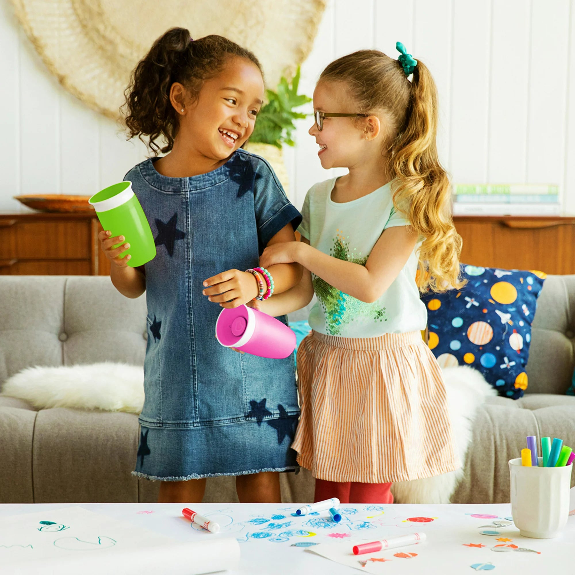 O Copo Grande 360° com Tampa Rosa – Munchkin é ideal para bebês que estão aprendendo a usar copinhos, pois permite que a criança beba o líquido em qualquer lado do copo, basta inclinar o copo e sugar.