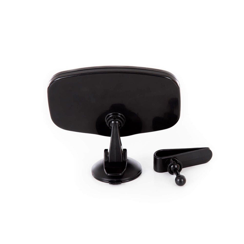 Duas formas de instalação: Seja com a ventosa diretamente no vidro dianteiro do carro, seja via gancho no para-sol, ele permite máxima segurança durante os trajetos. O espelho é convexo, o que aumenta o campo visual do condutor. De fácil instalação e retirada, foi projetado para olhar as crianças no banco traseiro sem descuidar do trânsito e da direção.
