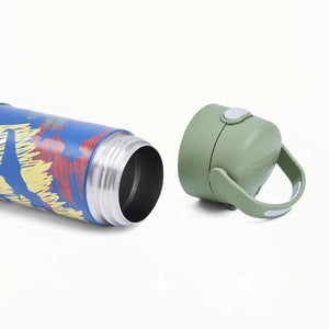 É uma garrafa térmica fácil para a criança abrir através do sistema de abertura com mão única e o canudo em silicone macio que acompanha o produto proporcionando conforto na hora de beber, além da alça de transporte integrada ao produto com design leve e compacto, perfeita para todas as ocasiões.