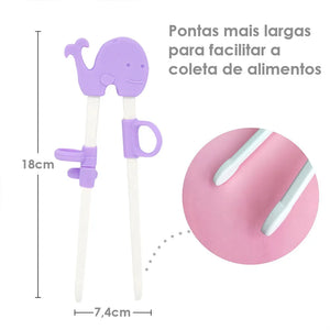 Os anéis foram feitos para facilitar a pega dos Palitinhos de Treinamento e podem ser ajustados para o ângulo que seja mais confortável e que se encaixe melhor para cada mão de cada criança. As pontas mais largas permitem uma maior facilidade na hora de pegar os alimentos. Todas as partes são removíveis para uma limpeza sem complicações.