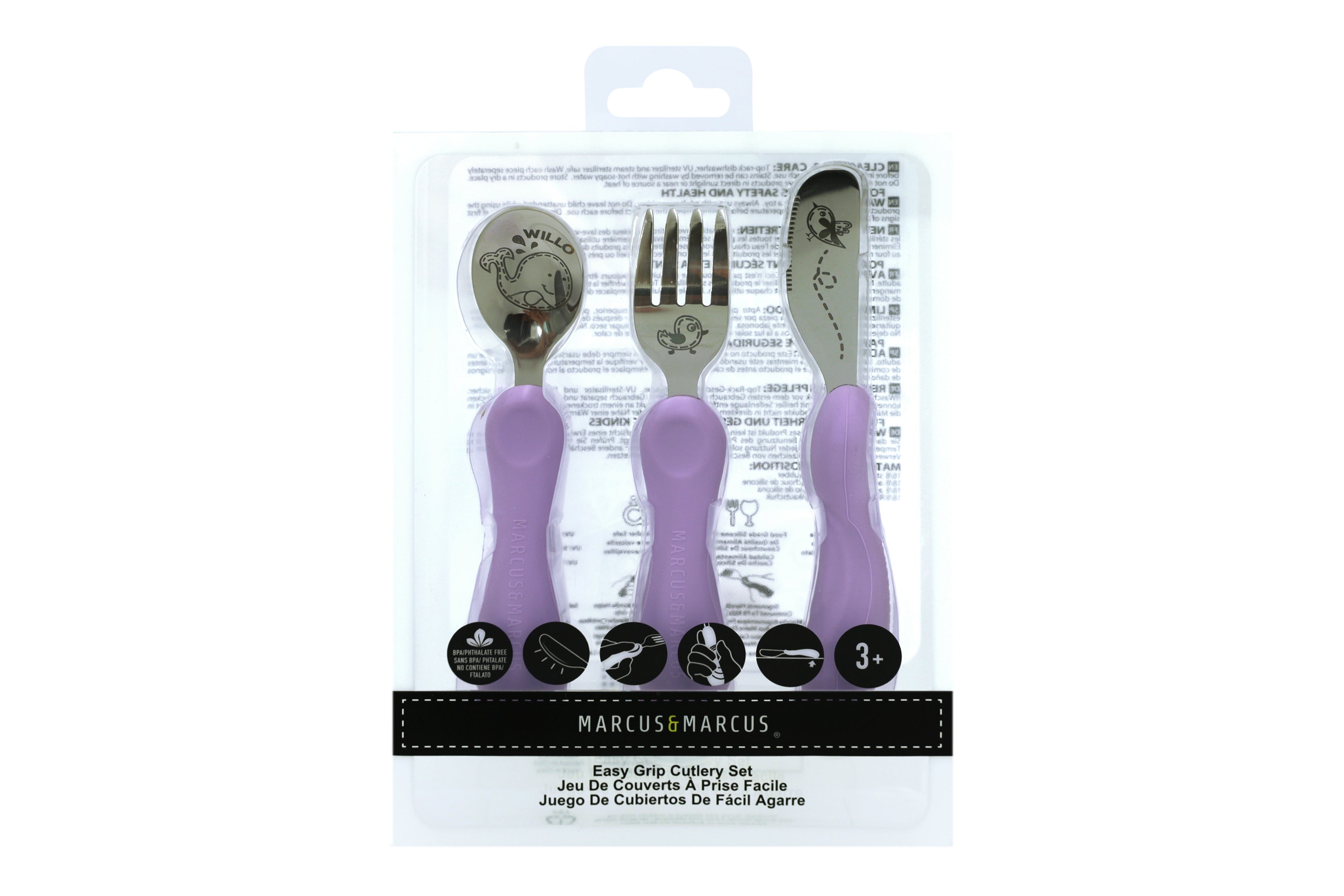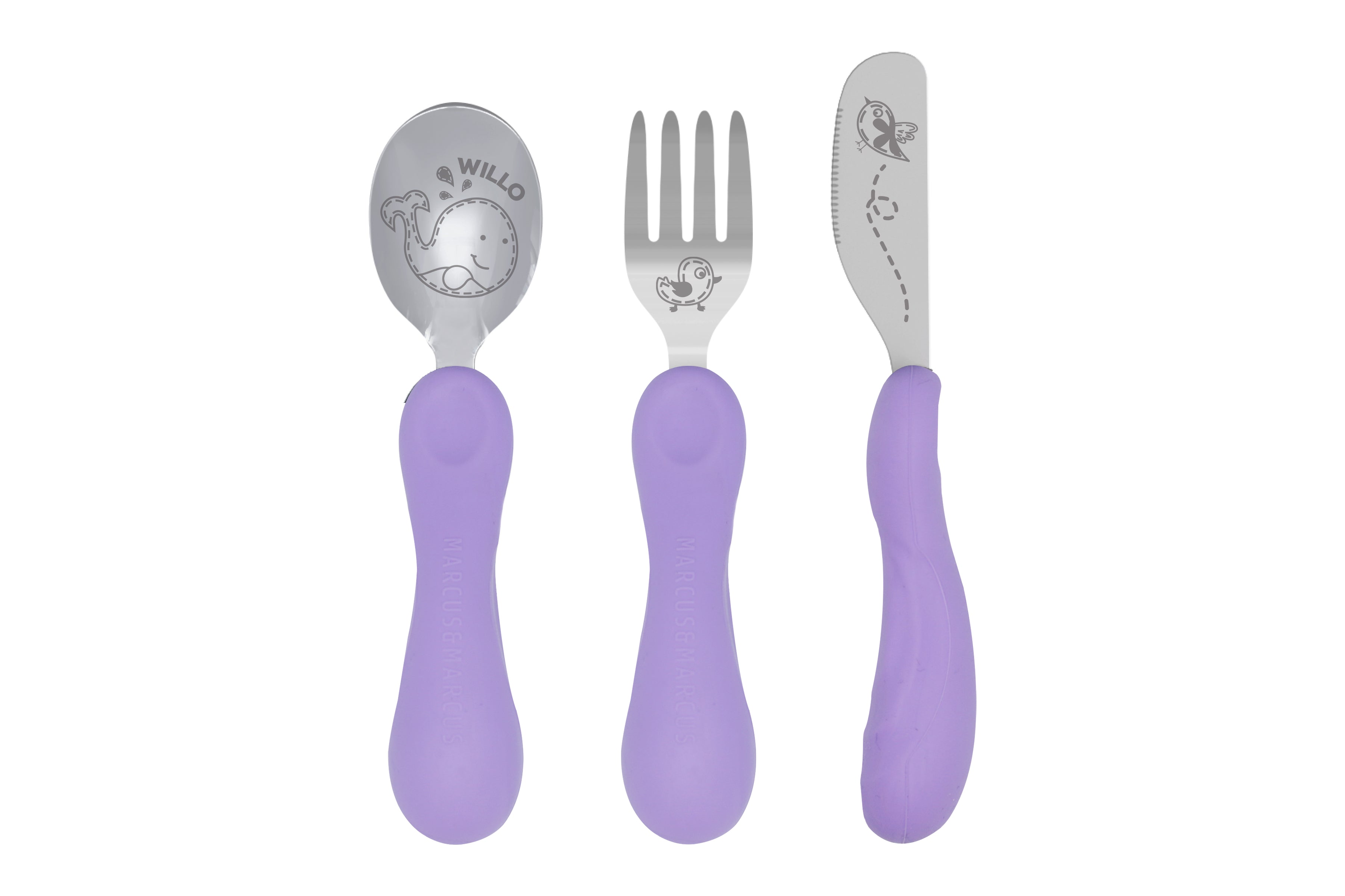 Kit Talheres Infantil Baleia Willo Lilás - Marcus & Marcus