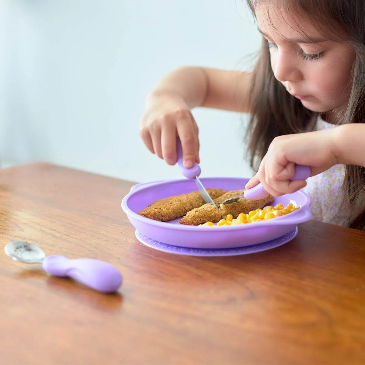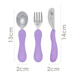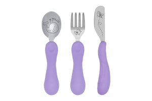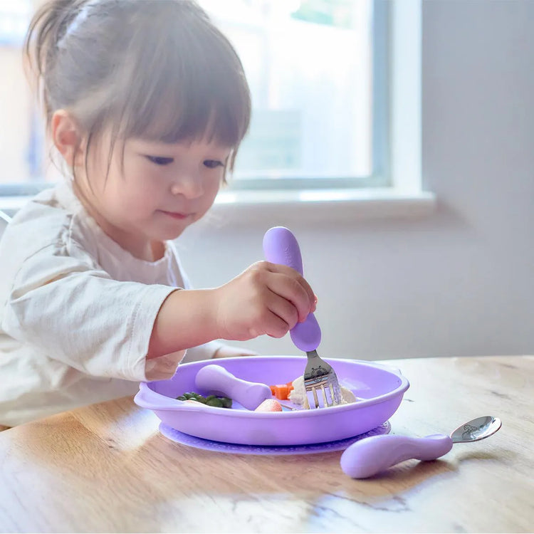 O jogo anatômico de colher, garfo e faca é perfeito para os pequenos explorarem a alimentação de forma segura e divertida. Com design anatômico e detalhes em lilás, cada utensílio é projetado para as mãos das crianças, facilitando o aprendizado e proporcionando uma pegada confortável e firme.