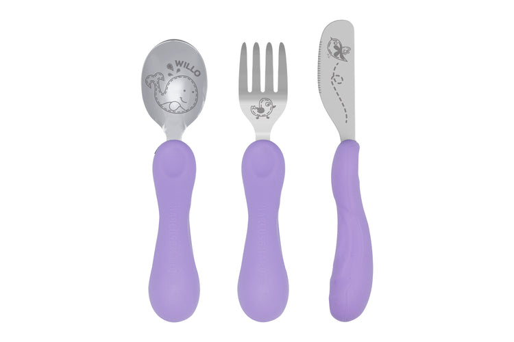 Jogo Anatômico Colher, Garfo e Faca Baleia Willo Lilás - Marcus & Marcus