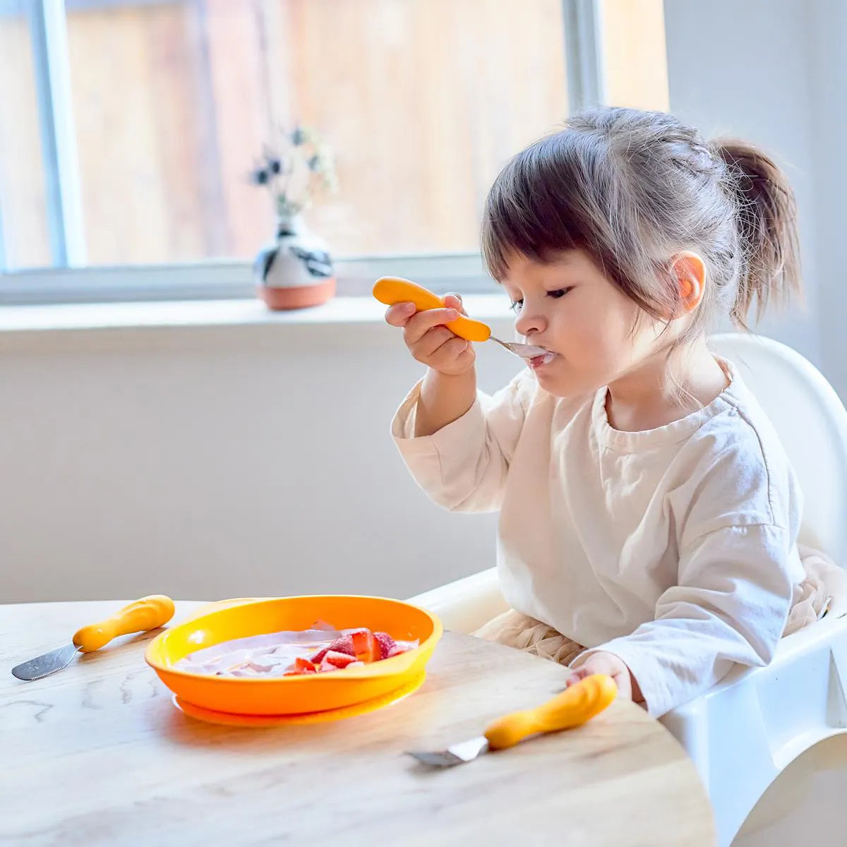 O jogo anatômico de colher, garfo e faca é perfeito para os pequenos explorarem a alimentação de forma segura e divertida. Com design anatômico e detalhes em amarelo, cada utensílio é projetado para as mãos das crianças, facilitando o aprendizado e proporcionando uma pegada confortável e firme.