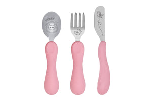 Jogo Anatômico Colher, Garfo e Faca Porquinha Pokey Rosa - Marcus & Marcus