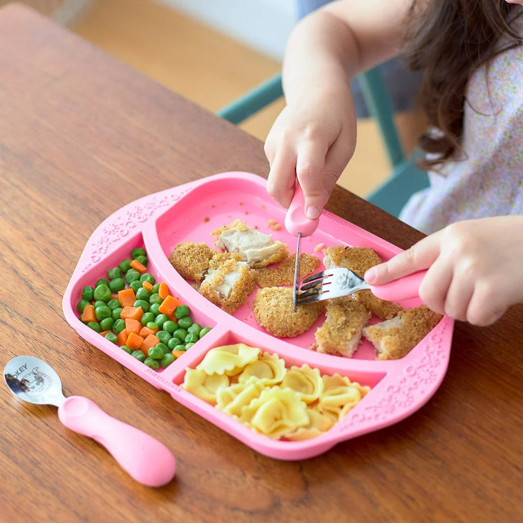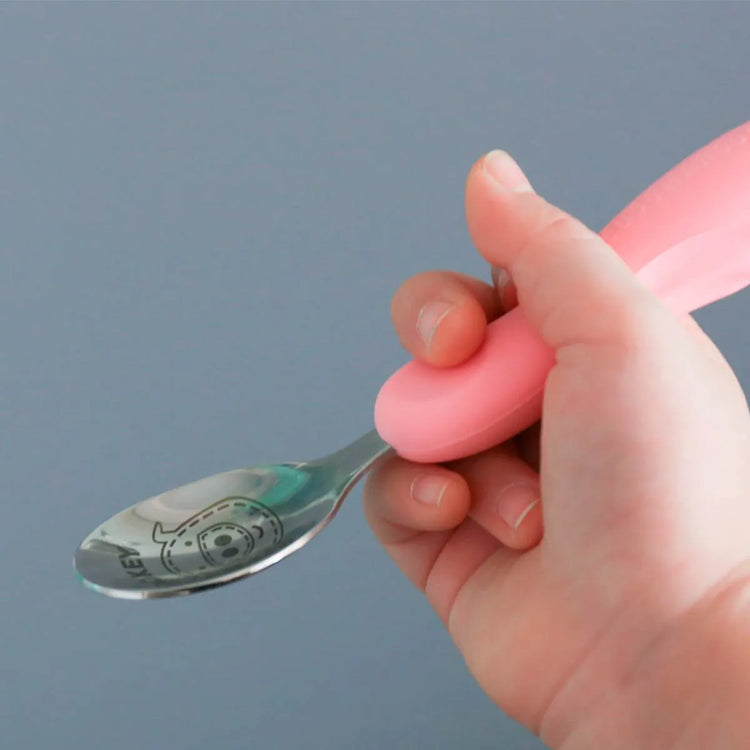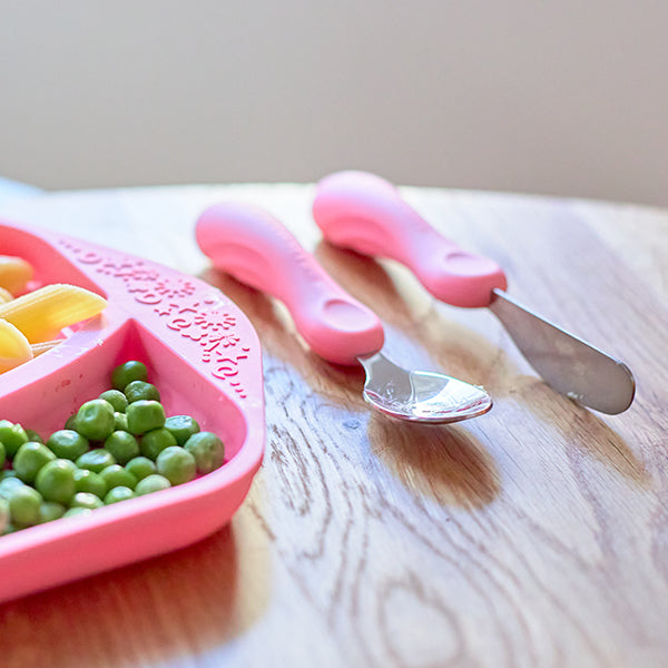 O jogo anatômico de colher, garfo e faca é perfeito para os pequenos explorarem a alimentação de forma segura e divertida. Com design anatômico e detalhes em rosa, cada utensílio é projetado para as mãos das crianças, facilitando o aprendizado e proporcionando uma pegada confortável e firme.
