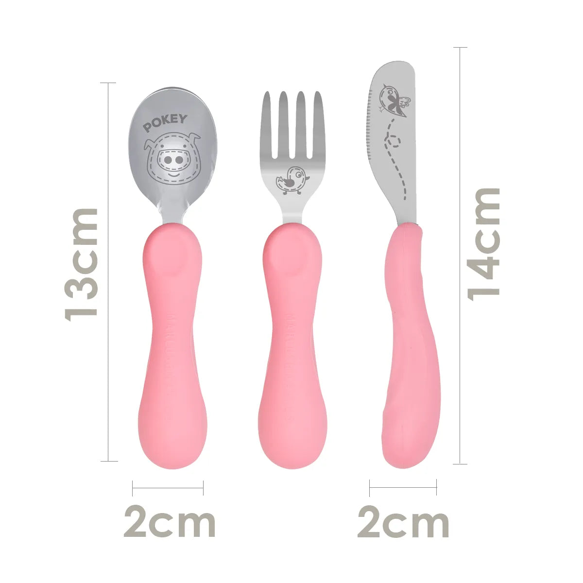 Kit Talheres Infantil Porquinha Pokey Rosa - Marcus & Marcus