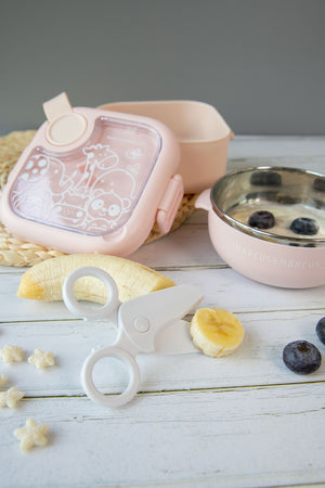 Kit com Tigela 2 Estágios, Colher e Tesoura Alimentar Rosa - Marcus & Marcus