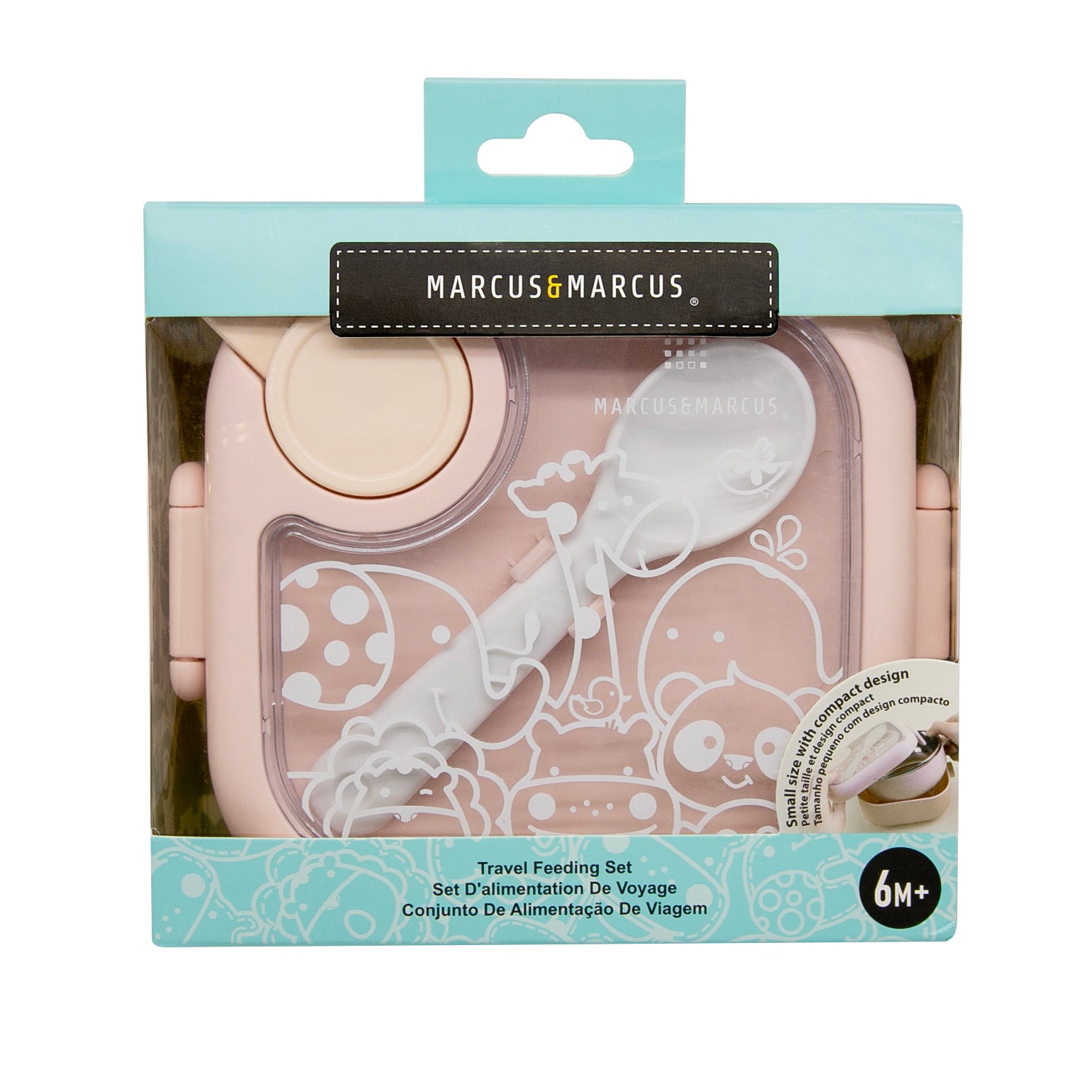 O conjunto de alimentação de viagem Marcus & Marcus é a solução ideal para pais em movimento. Este conjunto completo inclui uma tigela, uma tesoura e uma colher de alimentação, tudo cuidadosamente embalado dentro de uma lancheira.