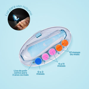 O Kit Lixas de Unha Elétrico da Buba foi desenvolvido para cuidar com delicadeza e segurança das unhas do bebê. Possui 6 lixas para diferentes faixas etárias e um estojo super prático para levar em passeios e viagens. Além disso, conta com luz LED e 4 formas de uso: rotação alta e baixa no sentido horário e anti-horário.