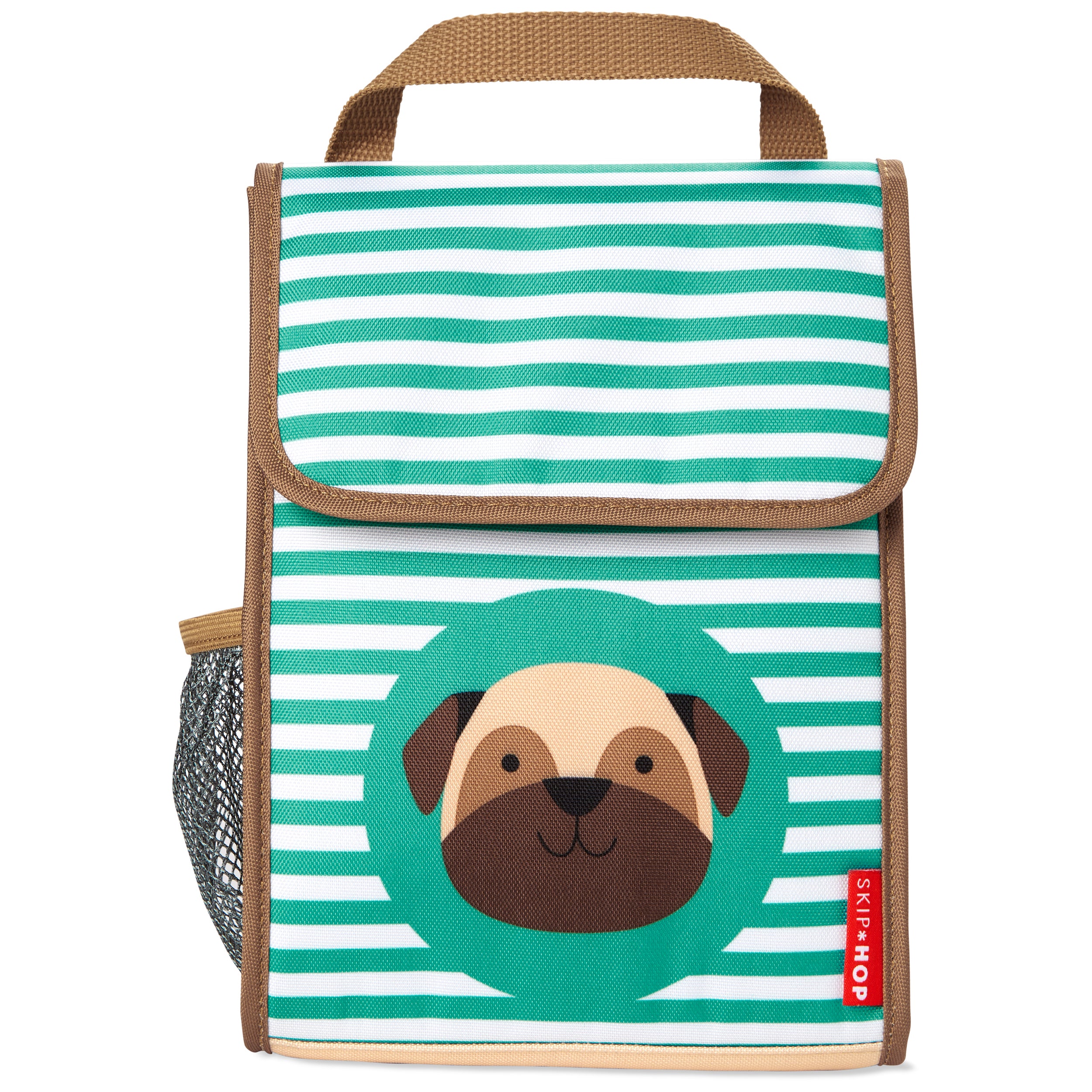 A Lancheira Térmica Infantil Zoo Cachorro Pug da Skip Hop mantém os alimentos e lanches frescos em qualquer lugar. Seus bolsos internos acomodam utensílios, bolsas de gelo e muito mais, enquanto um bolso de malha para garrafas mantém as bebidas à mão. Com fechamento por aba e uma alça de encaixe, esta lancheira é indispensável para a escola, passeios, viagens, atividades ao ar livre, acampamentos e piqueniques, adaptando-se às diversas necessidades do dia a dia.